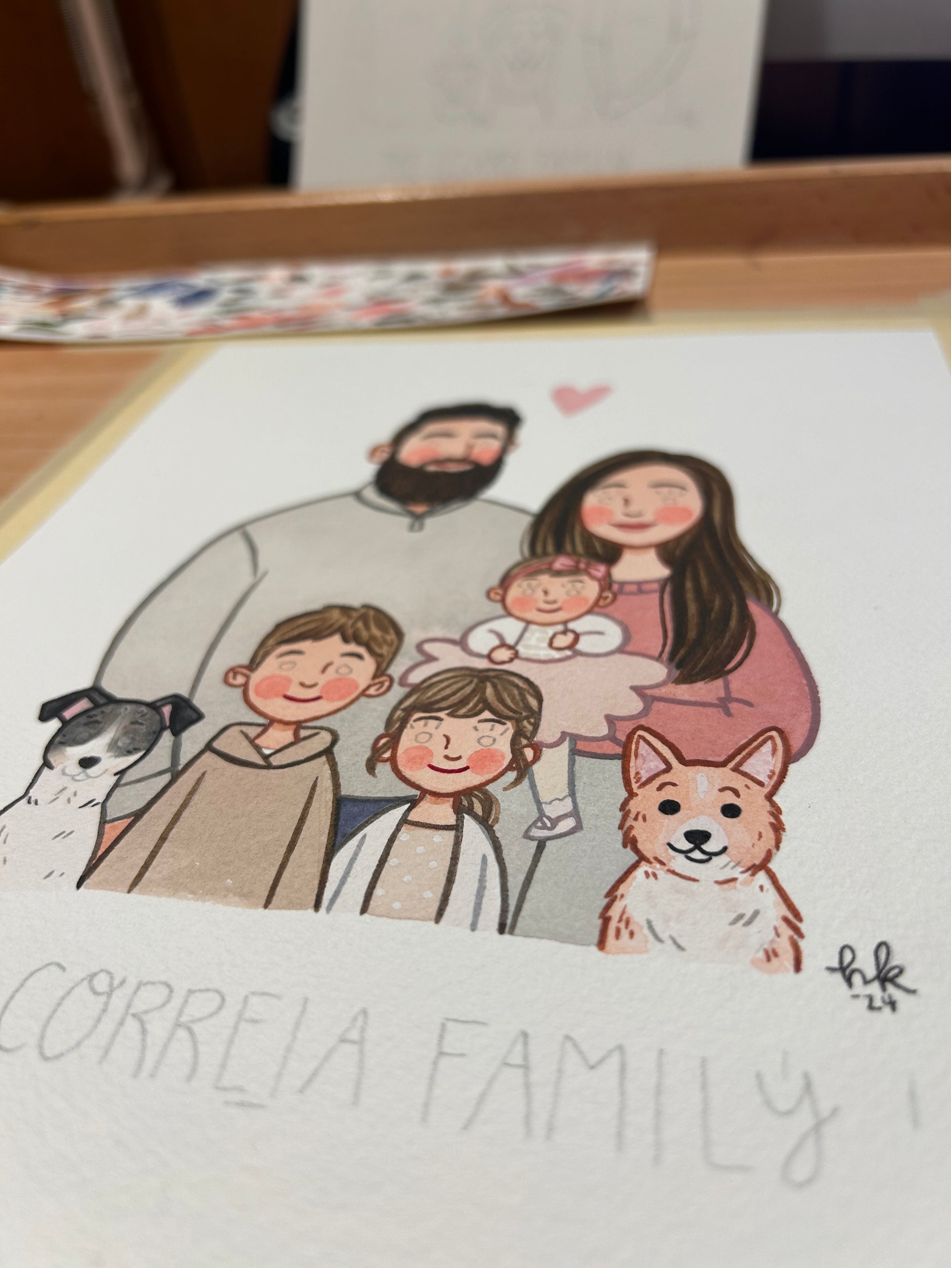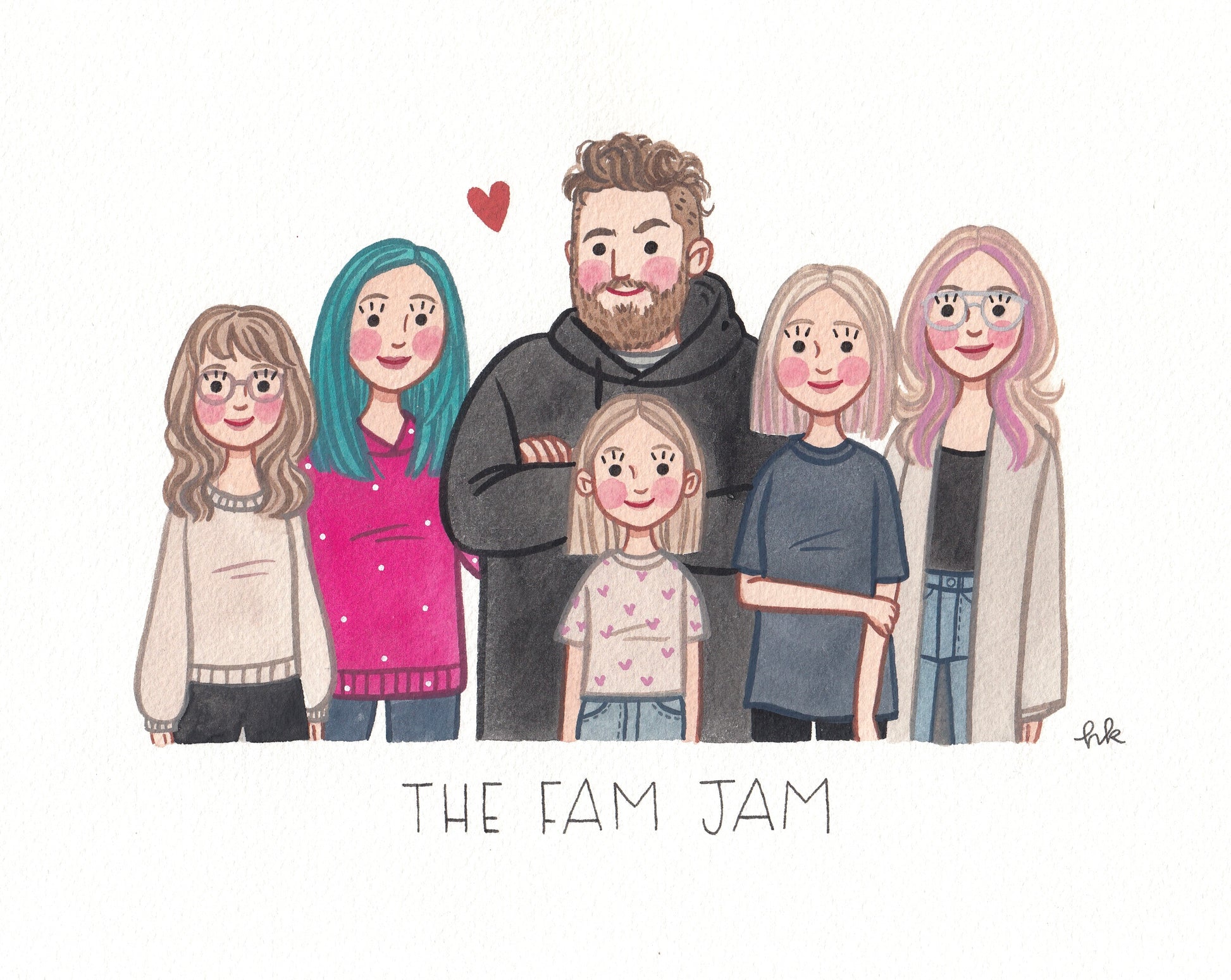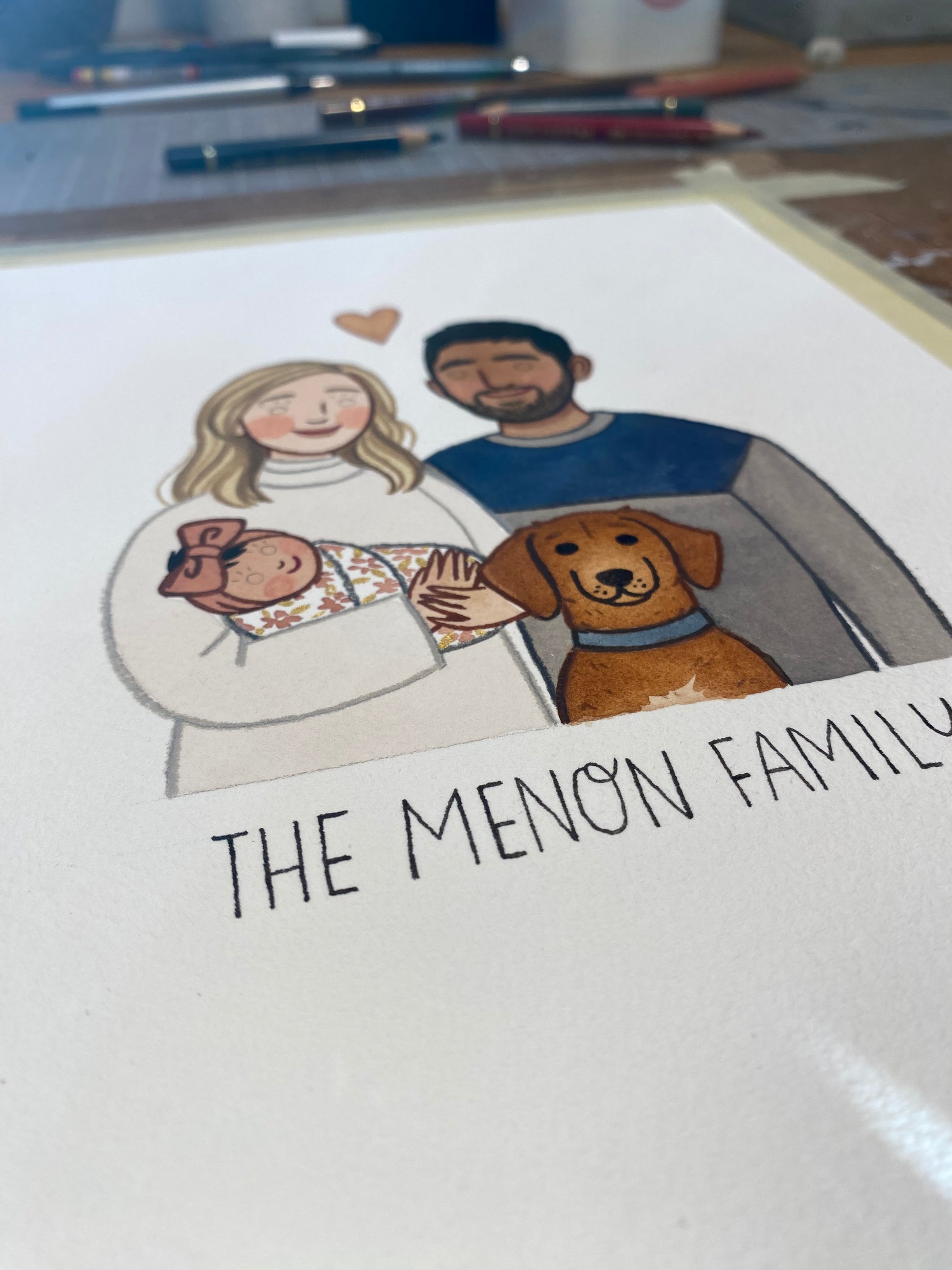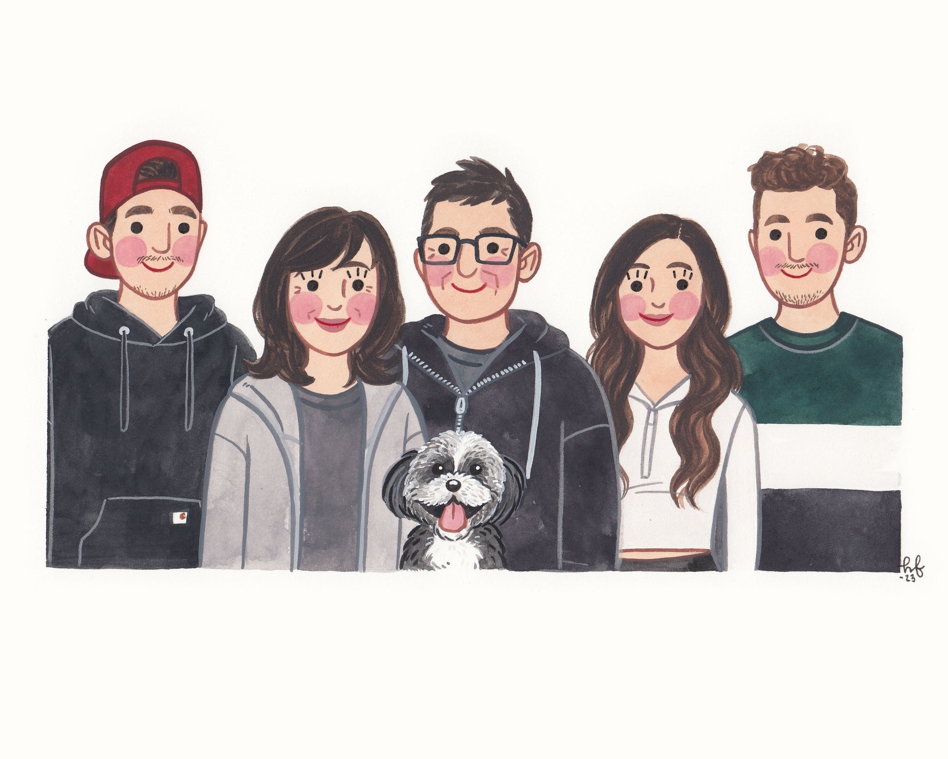 Celebrate your loved ones with a one-of-a-kind illustrated portrait, carefully hand-painted to capture the unique personality of your family. Each piece is an original artwork created on 8 x 10 inch cold press watercolour paper and comes unframed.